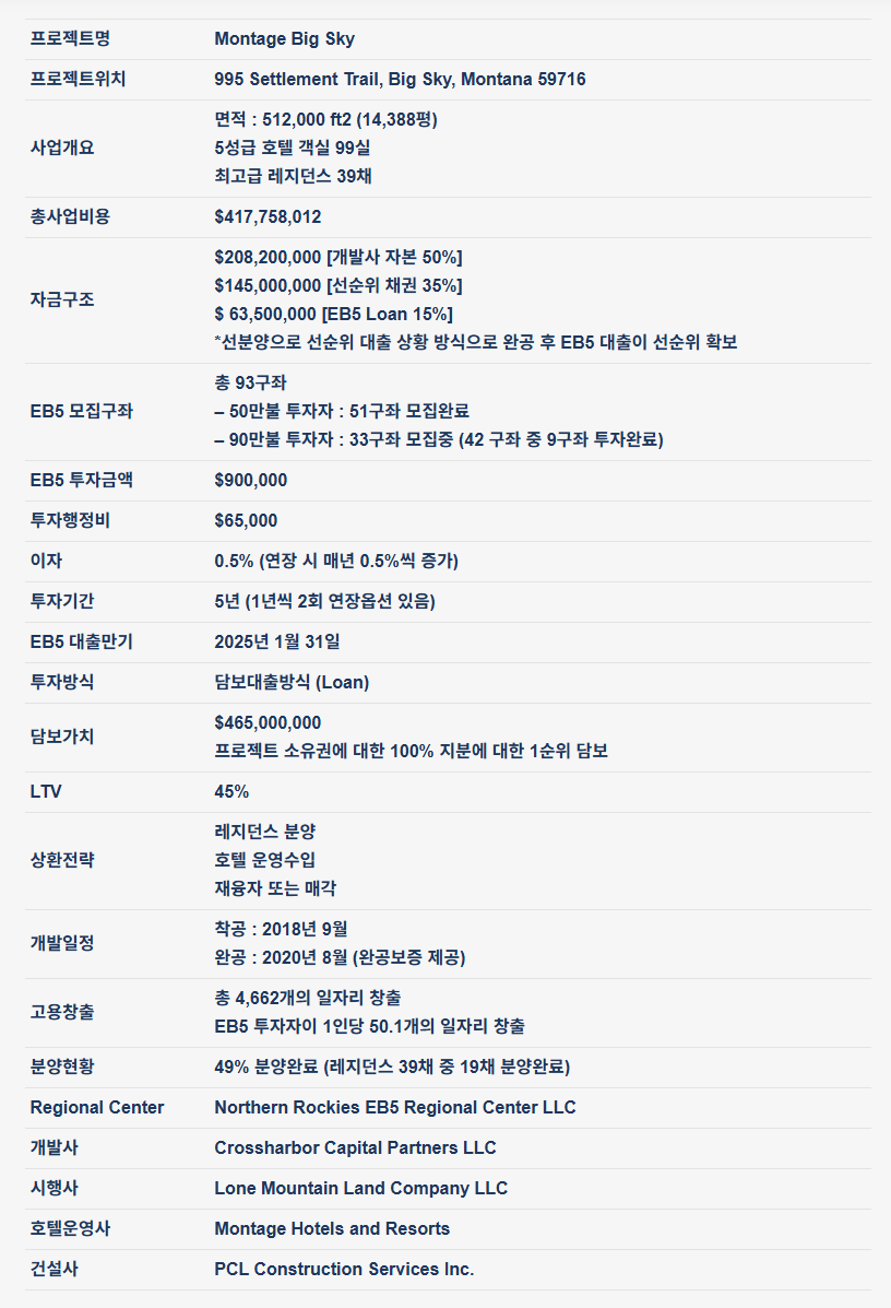 - 콘도 사전분양 45% 완료 (사전분양 수입으로 선순위 대출 상환 후 EB5 투자자가 1순위 지휘 확보)