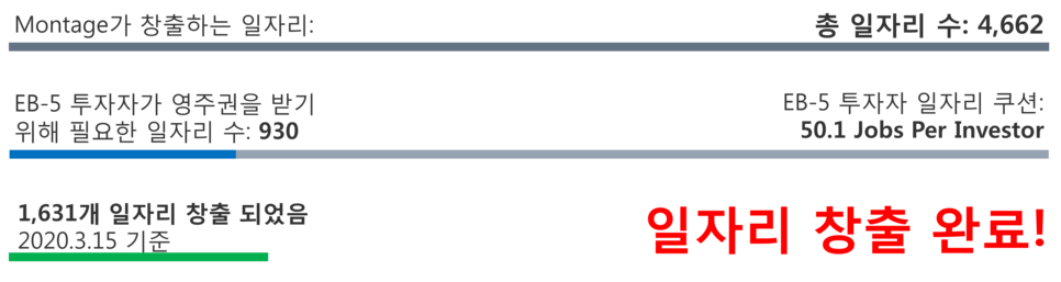 투자자 1인당 50.1개의 고용창출 함으로 EB5 투자이민법 조건을 5배 이상 상회합니다.